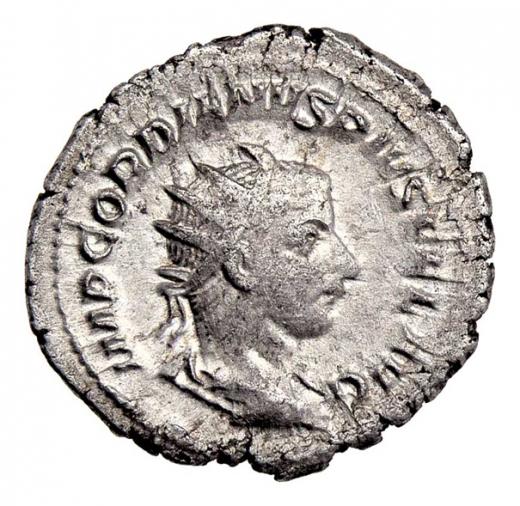 AR Antoninianus, Rv:"FORTVNA.REDVX." sedící Fortuna, podobný jako S.2335, RIC.144 - mincovna Řím - ražba z let 243 - 244, nepravidelný okraj