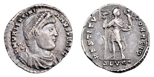 AR Siliqua, Rv:"RESTITVTOR.REIP.", S.3996, RIC.9.6b - Lugdunum - ražba z let 364 - 367, nep.exc., pěkná patina R!