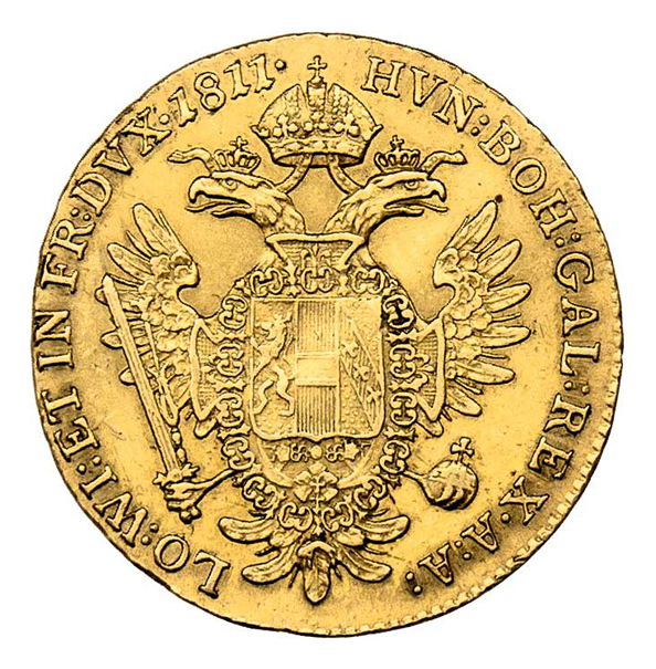 Dukát 1811 B - se znakem, Kremnica, 3.481g, nep.hr., nep.rysky, patina, téměř