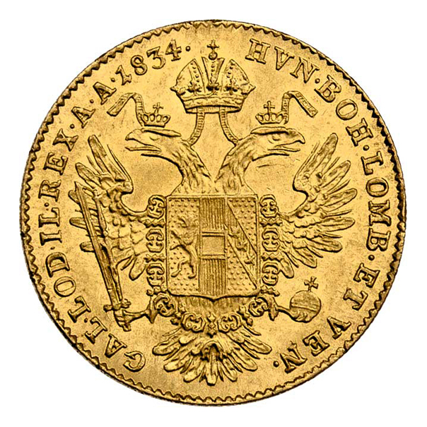 Dukát 1834 B - se znakem, Kremnica, 3.494g, nep.hr., nep.rysky, nep.stopa po oušku, pěkná patina, téměř