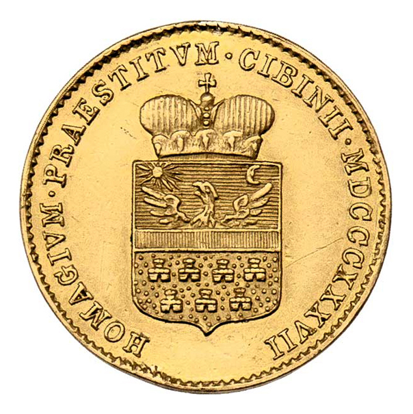 Dukát 1837 - na holdování sedmihrad. stavů v Sibini, hlava zprava, opis / korunovaný znak, opis, 18mm, 3.446g, P.4/5, Nov.E.3a, dr.hr., vlas.škr., rysky