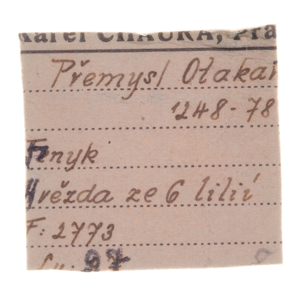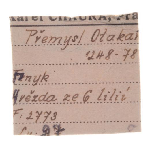 Fenik b.l., Enns, Koch.195, CNA1.B.198, Luschin.97, 0.778g, nep.nedor., pěkná patina, Chaurův podložní lístek (přiřazuje Přemyslu Otakaru II.), perf.ražbou