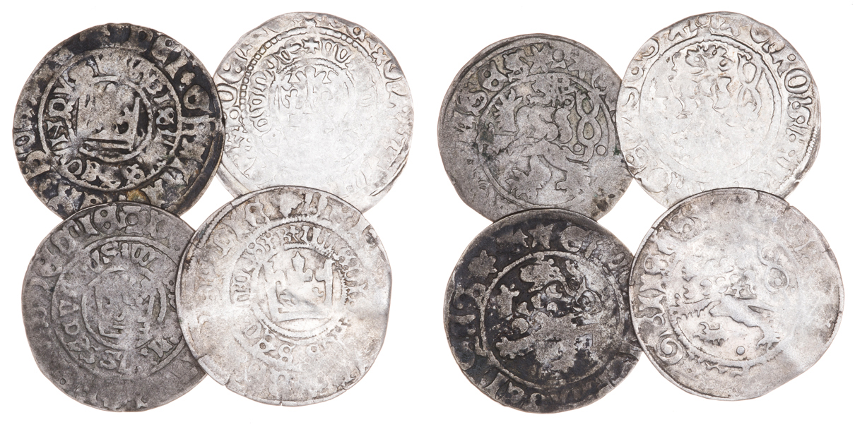 Pražský groš, blíže neurčený, nedoražený, patina 4ks