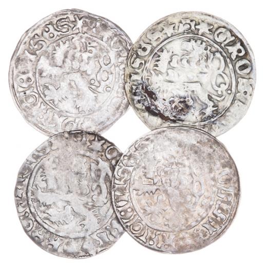 Pražský groš, blíže neurčený, nedoražený, patina 4ks