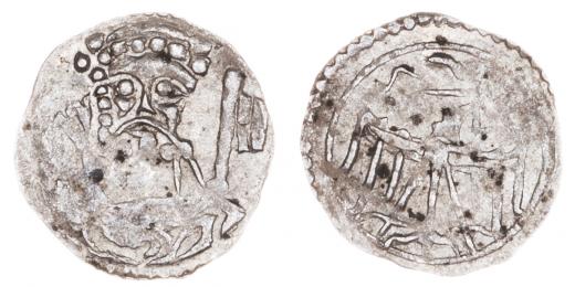 Haléř b.l. (1425), poprsí svatého Petra / slezská orlice, Sa.75, Fried.177, 0.217g, pěkná patina