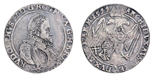 Tolar 1599, K.Hora-Dominig, J.39, MKČ.366, 28.240g, dr.vady materiálu, nedor., dvojráz, patina