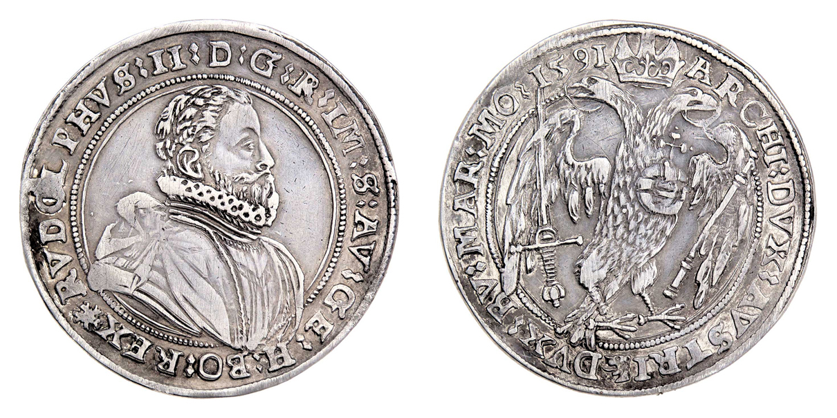 Tolar 1591, Č.Budějovice-Mattighoffer, J.52, MKČ.428, 28.345g, dr.vady materiálu, dr.vady razidla, nep.dvojráz, dr.rysky, patina R!