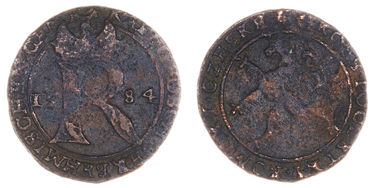 Početní groš 1584, K.Hora-Šatný, Pro.7.1.3.6, J.66c, podobný jako ČS.216, 2.017g, nedor., patina