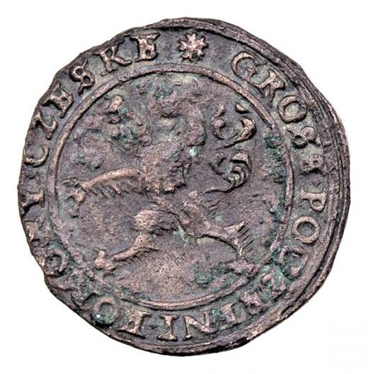 Početní groš 1594, K.Hora-Herold, Pro.7.1.3.14a, (pravá přední tlapa lva směřuje k písmenům SK), J.66c, ČS.217, 2.529g, mírně kor., skvrnky, patina