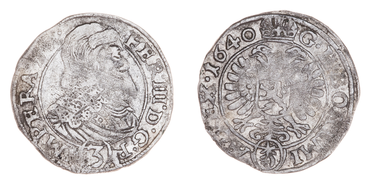 3 Krejcar 1640, Praha-Wolker, J.3a, MKČ.1180, 1.635g, nedor., patina