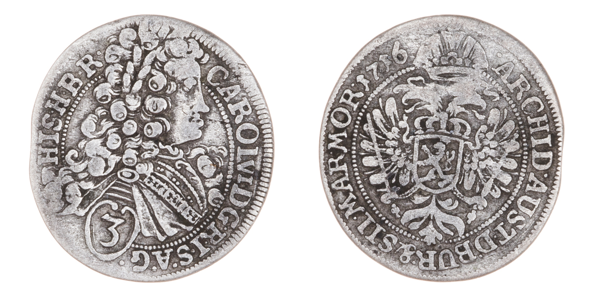 3 Krejcar 1716, Praha-Scharff, J.8c, MKČ.1828, 1.319g, nedor., patina