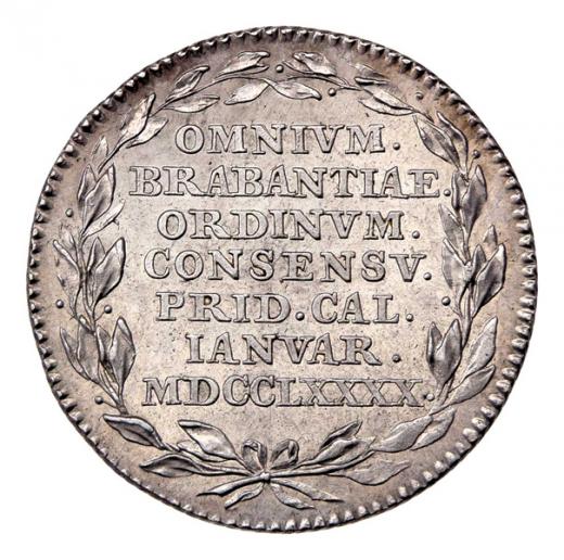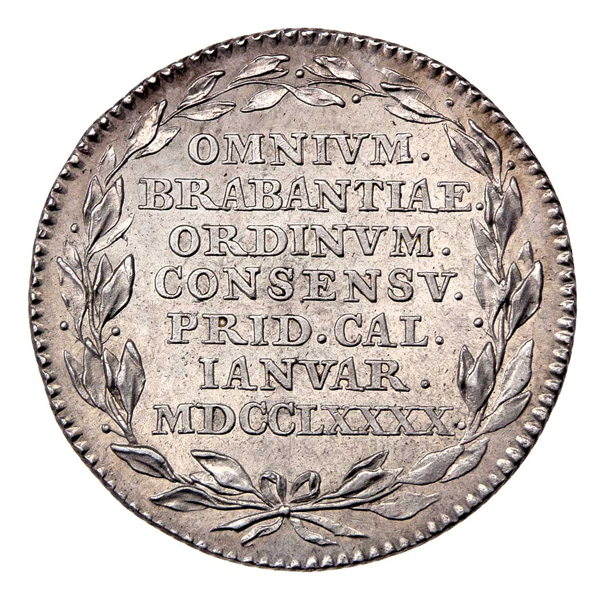 Brabantsko - AR jeton na vyhlášení samostatnosti 1790 - 7-řádkový nápis ve věnci/ 7-řádkový nápis ve věnci, Ag 34mm, 12.480g, M.2195, FW.II.11369 (AE), patina