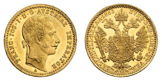 Dukát 1863 A, 3.478g, nep.hr., nep.rysky