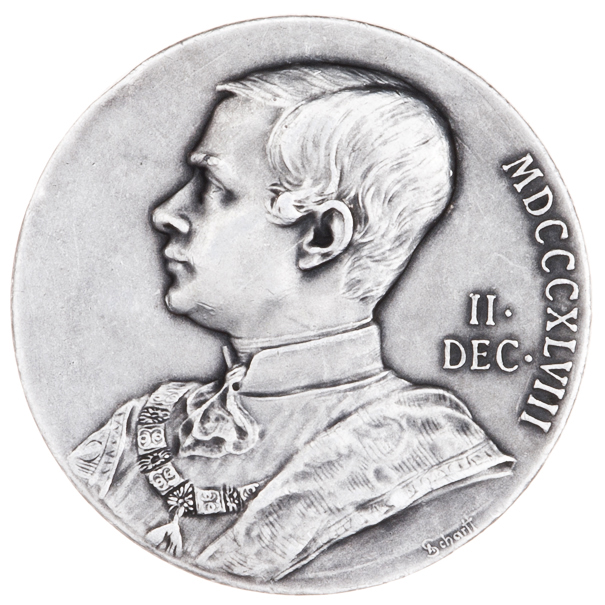 Scharff - medailka na 50 let vlády 1898 - poprsí zprava, písmo / mladé poprsí zleva, písmo, Sign., Punc., Ag 26mm, 7.881g, ČS.1613, H.3883, nep.hr.,tém.