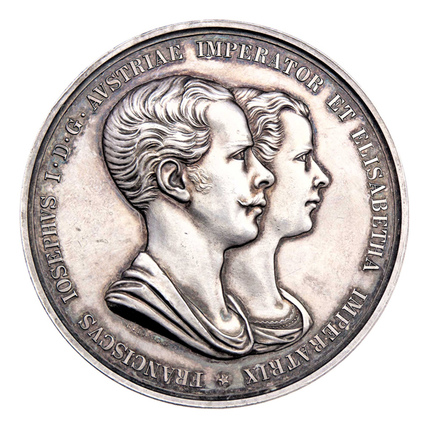 Lange - AR medaile na narození dcery Sofie 5.3.1855 - dvojportrét zprava, opis/ anděl předává dítě Austrii, písmo, Ag 56mm, 87.395g, H.3767, nep.rysky, patina