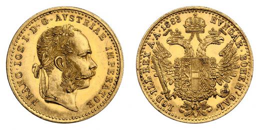 Dukát 1883, 3.486g, nep.hr., nep.rysky, patina
