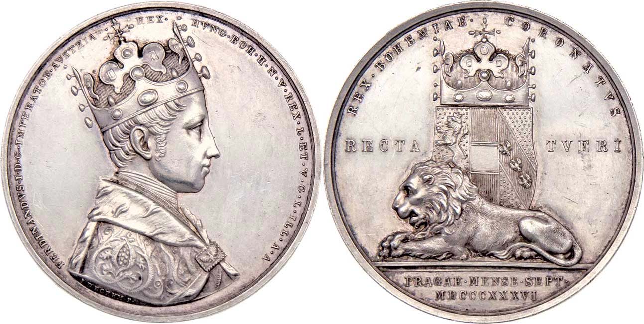 Boehm - AR medaile na korunovaci v Praze 7.9.1836 - poprsí zprava, opis / ležící lev, korun. znak, písmo, 47mm, 43.924g, Nov.D.1b, ČS.1493, nep.hr., vlas.rysky