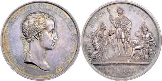 Roth - AR medaile na korunovaci v Miláně 1838 - hlava zprava, opis/ císař přijímá hold Lombardie a Benátek, písmo, Sign., 44mm, 35.041g, Nov.G.2b, M.2580, patina
