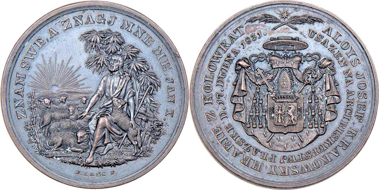 Lang - AE introniz. medaile - 17.dubna.1831 - Kristus jako dobrý pastýř, český opis / znak, české opisy, Sign., 34mm, 16.489g, Don.4667, Přib.501, dr.hr.