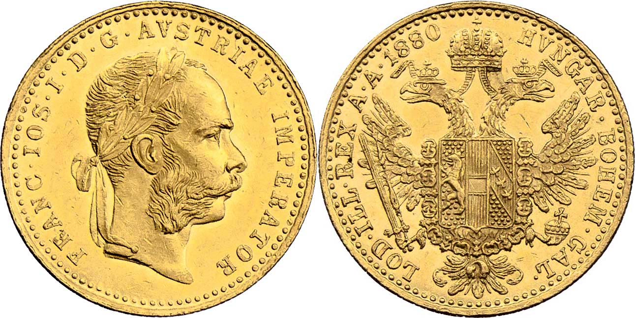 Dukát 1880, 3.490g, nep.hr., patina