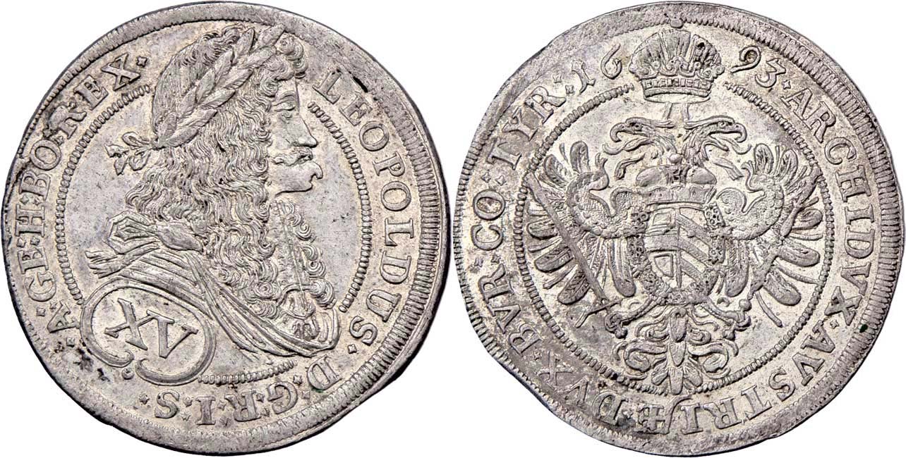 XV Krejcar 1693, Vídeň-Mittermayer, Nech.1920, M-A.192, 6.179g, krajový střížek, nep.vada razidla, pěkná patina