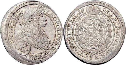 XV Krejcar 1696, Št.Hradec-Aigmann, Nech.2166, M-A.194, 6.351g, nep.exc., škr., pěkná patina