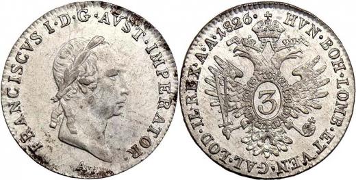 3 Krejcar 1826 A, 1.763g, nep.vada razidla, pěkná patina R!