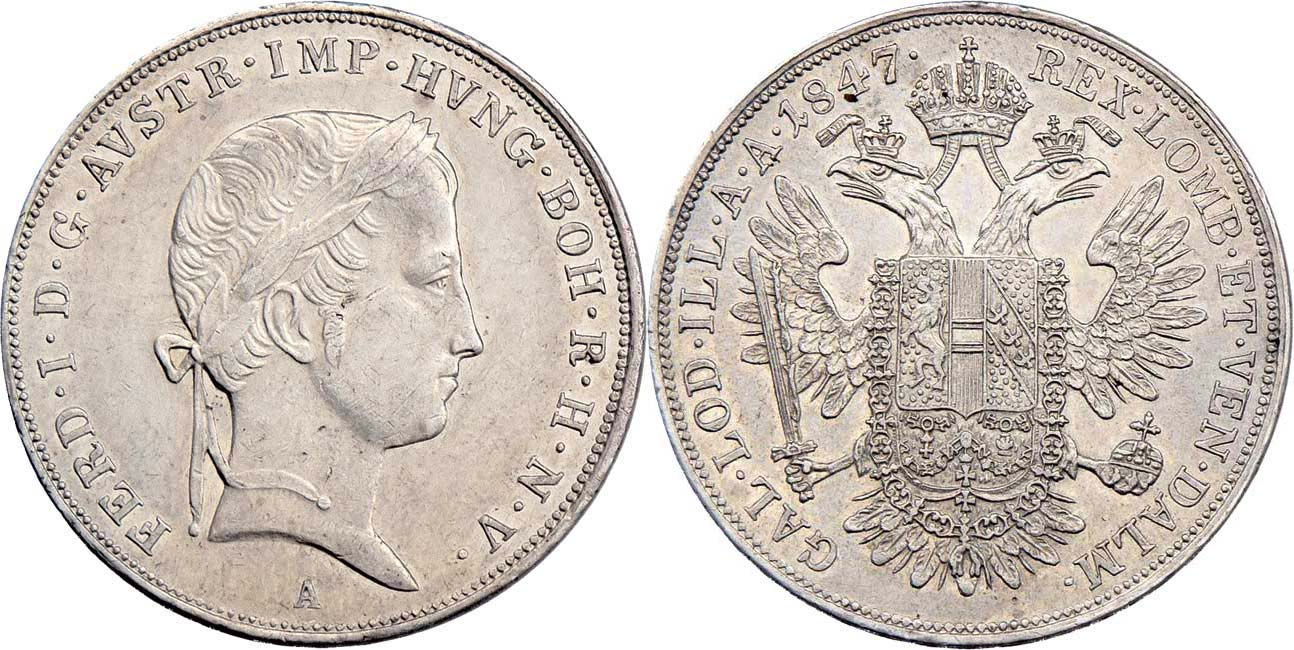 1/2 Tolar 1847 A, 13.982g, nep.hr., nep.rysky, patina, téměř