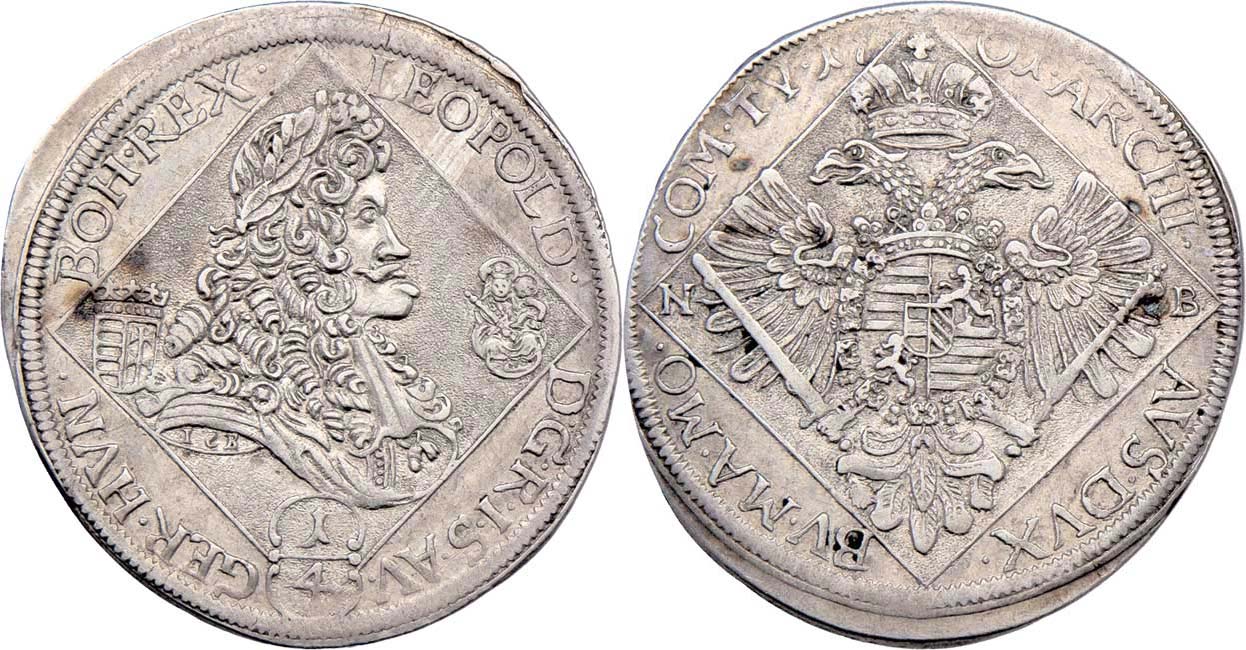 1/4 Tolar 1701 ICB/NB, Nagybanya, Nech.1516, Husz.1415, 7.162g, nep.exc., pěkná patina R!