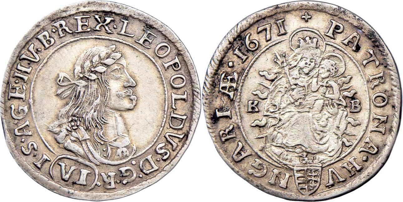 VI Krejcar 1671 KB, Nech.1192, Husz.1450, 3.096g, pěkná patina, téměř