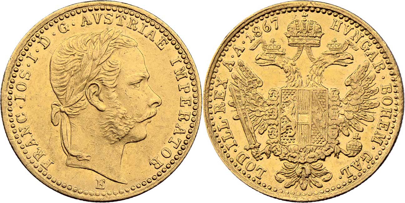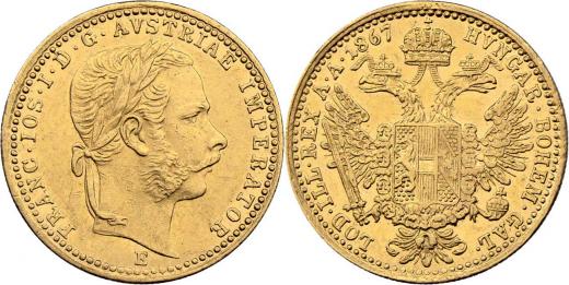 Dukát 1867 E, 3.469g, nep.hr., nep.rysky, patina R!