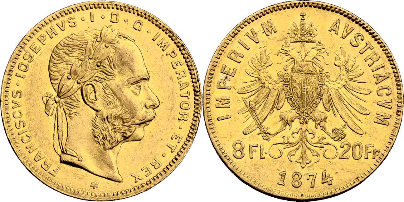 8 Zlatník 1874, 6.432g, nep.hr., nep.rysky, patina, téměř