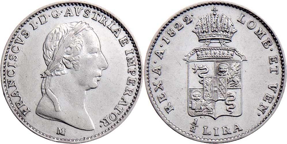 1/2 Lira 1822 M, P.27, 2.132g, nep.hr., nep.rysky, téměř