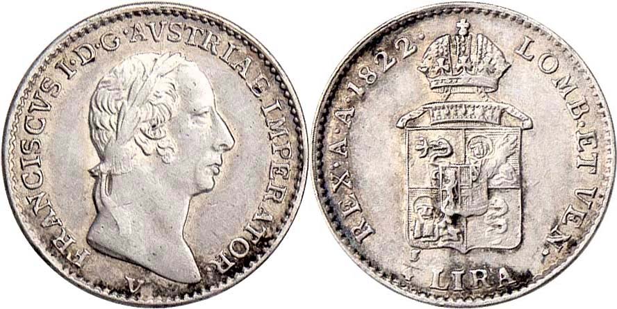 1/4 Lira 1822 V, P.28, 1.616g, nep.hr., nep.rysky, pěkná patina