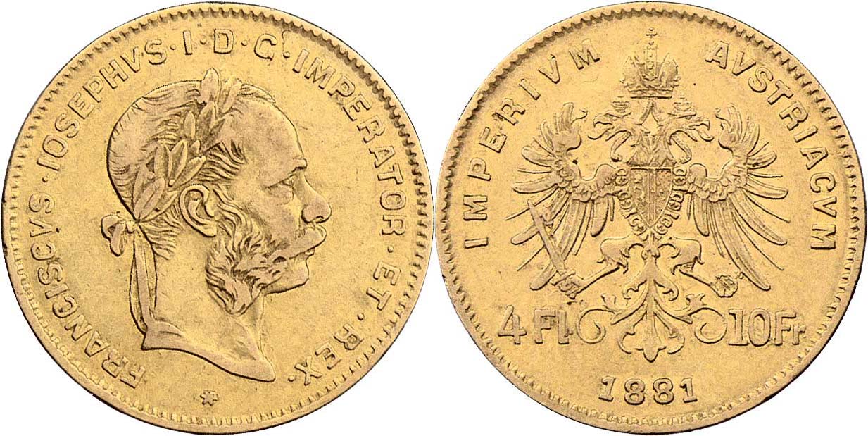 4 Zlatník 1881 (pouze 8.370 ks), 3.191g, nep.hr., nep.rysky, pěkná patina RR!
