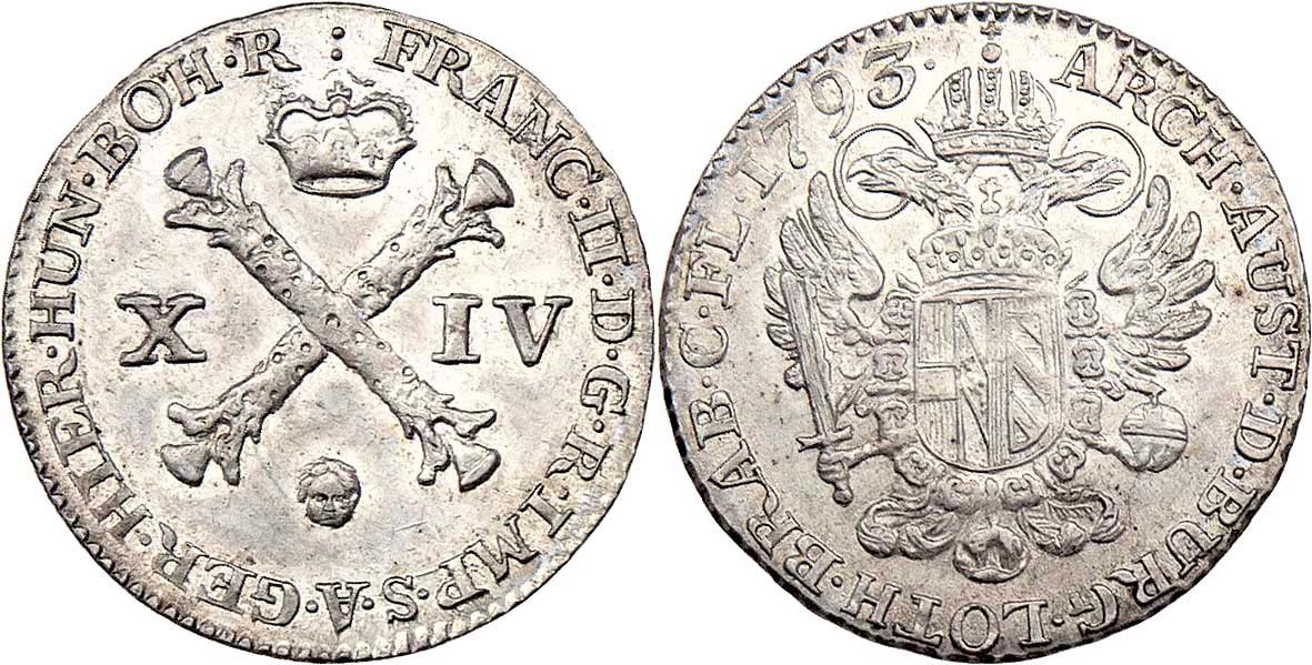 XIV Liard 1793, Brusel, P.39, 2.683g, nep.vady razidla R!
