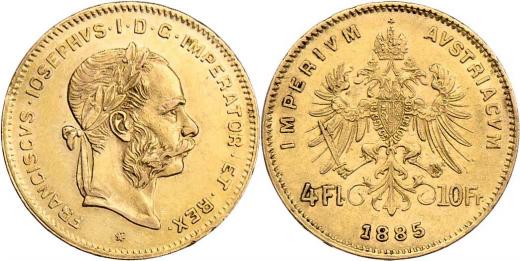 4 Zlatník 1885 (pouze 38.000 ks), 3.216g, nep.nedor., dr.hr., nep.rysky, patina, téměř R!