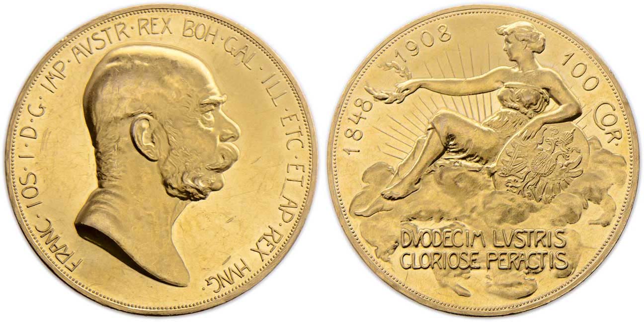 100 Koruna 1908 - jubilejní (pouze 16.000 ks), 33.844g, dr.hr., dr.rysky