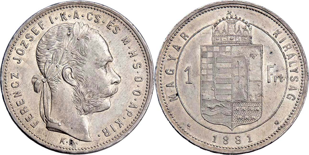 Zlatník 1881 KB - užší štít (cca 11.5 mm), 12.331g, nep.hr., nep.rysky, pěkná patina