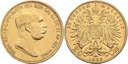 20 Koruna 1909 - Marschall, 6.760g, nep.hr., nep.rysky RR!