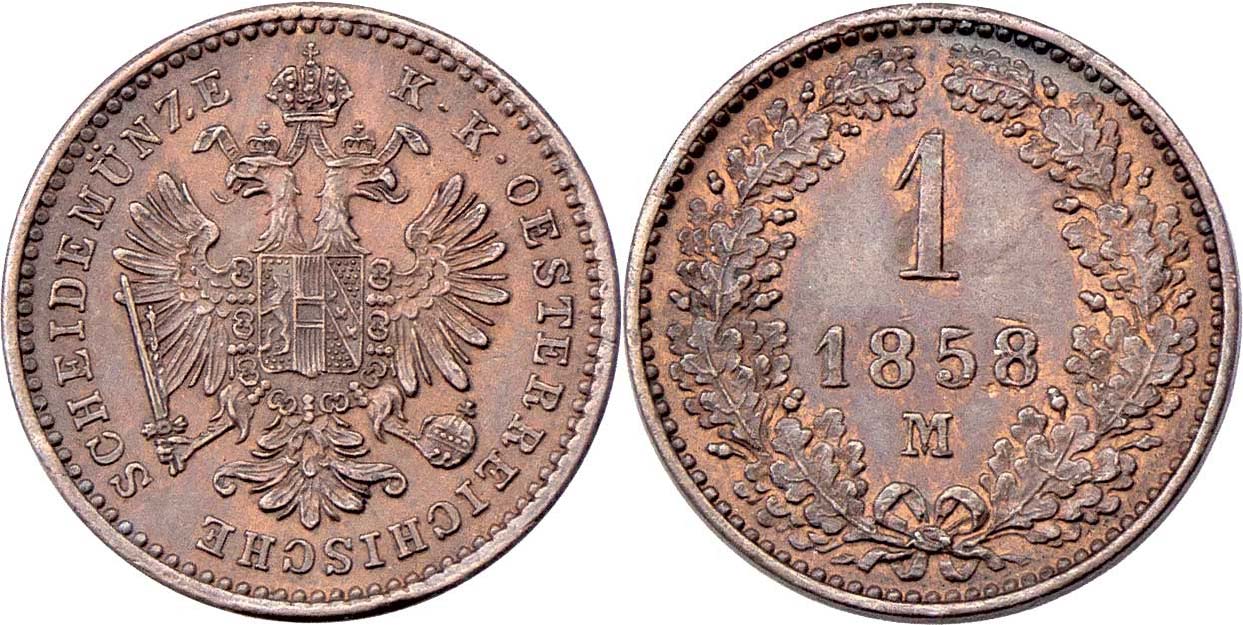 Krejcar 1858 M, 3.420g, nep.rysky, krásná patina, téměř R!