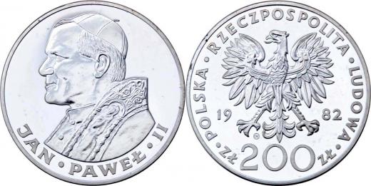 200 Zlotých 1982 - Jan Pavel II., Y.137, 28.177g, skvrnky, bez etue R!