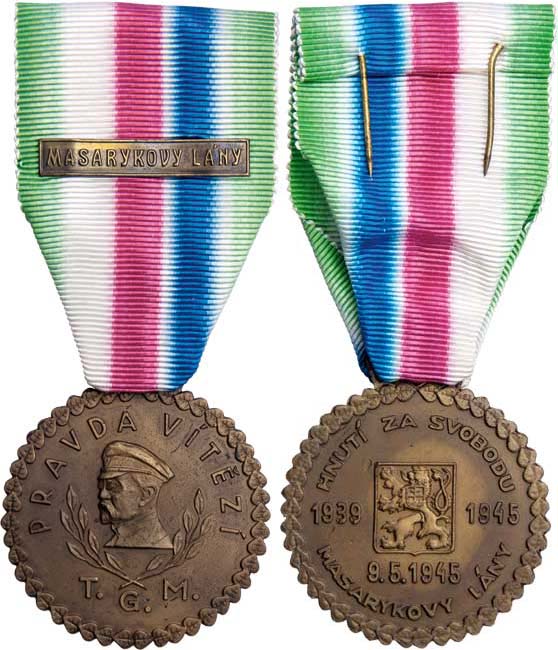 Masarykovy Lány - pamětní medaile odbojové skupiny, VM.192a, na stuze páska s nápisem, nepůvodní etue