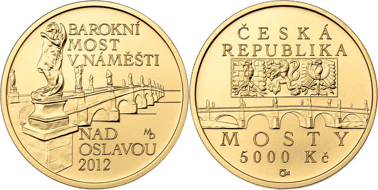 5000 Koruna (1/2 Unce) 2012 - Barokní most v Náměšti nad Oslavou, 15.582g, kapsle, etue, text