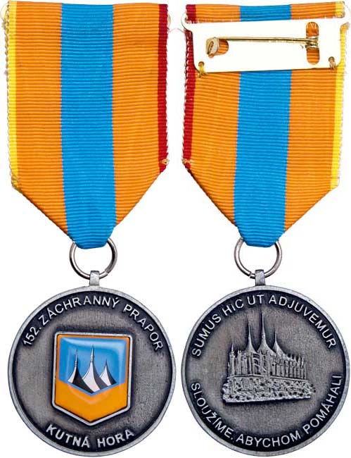 152.záchranný prapor Kutná Hora - pamětní medaile, F-Š.58, Nesign., patinovaný bronz 40 mm s plastickým barevným štítkem, původní stuha, stužka