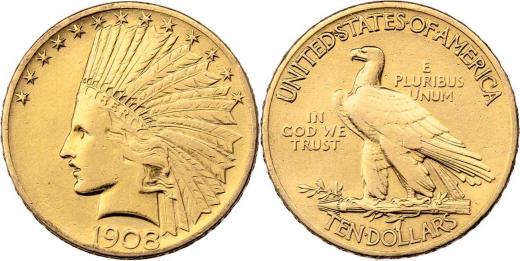 10 Dolar 1908 - hlava mladého indiána, KM.130, 16.670g, dr.hr., dr.rysky