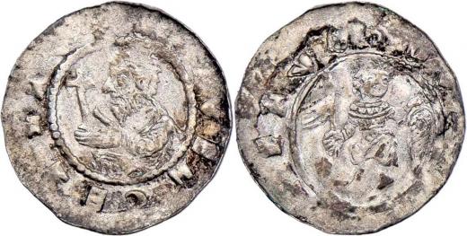 Denár, Ca.572, F.XVI/16 (1619), 0.734g, opisy část. nevyraženy, mírně exc., patina