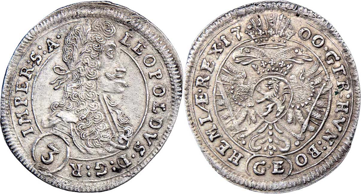 3 Krejcar 1700, Praha-Egerer, Nech.213, MKČ.1429, 1.668g, pěkná patina, téměř