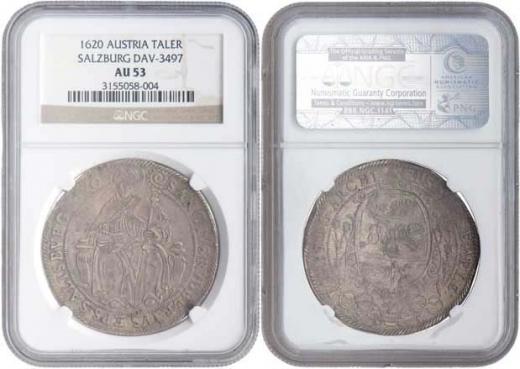 Tolar 1620 - znak / sv.Rupert, Zot.1462, Pr.1189, nep.nedor., pěkná patina, mince zatavena v etui NGC, uvedena zachovalost "Au53"