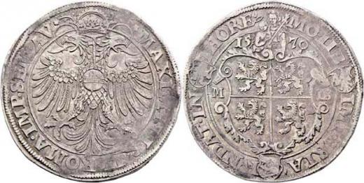 Tolar 1570 M-DB - s titulem císaře Maxmiliána II., Dav.8672, 29.086g, nep.nedor., nep.dvojráz, dr.škr., patina R!